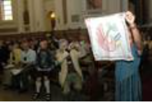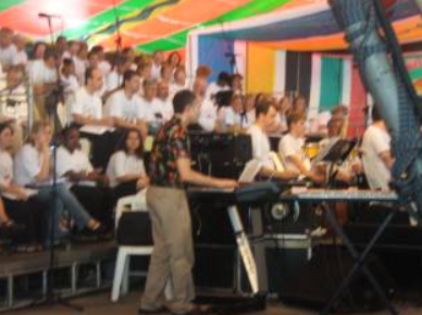 The final act of worship was a bringing together of all the symbols which had been used during the past two weeks, and used much of the wonderful music in many languages which we had learned and shared. The Assembly choir drawn from local churches, which had been practising for two years together, were admirably led, arriving very early each morning to greet us as we alighted from the buses with song. Other talented musicians, such as Ulf from Norway, a blind pianist, drummers from several lands who jammed together during the service, and the Danish family with two young girls who were able to extemporise at will, had enabled us to celebrate with our voices and whole bodies day by day. The thanksgiving was warm from us all.
