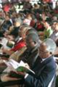 The pattern for each day was broadly the same. After collective morning worship, there was Bible study. Delegates and observers met in small mixed groups, the same group each day, which enabled them to become very familiar with other members of their group and enter into deeper exchanges. Many of them had studied the Bible texts before the Assembly in their own countries and so brought insights from further afield. In the Mutirão, participants met all together in the plenary hall, and there was a presentation before they gathered in small discussion groups with the people who happened to be sitting around them.